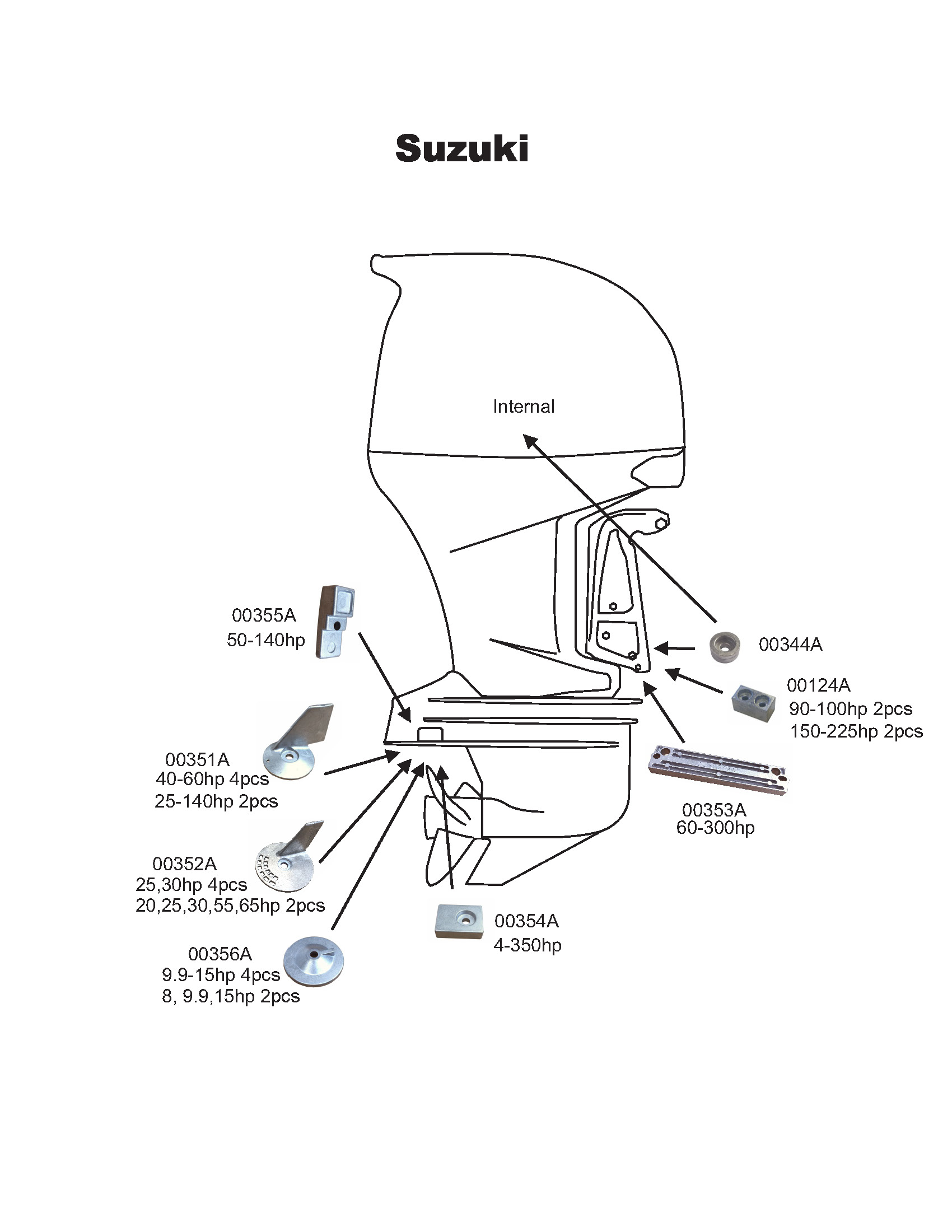 Perf metals anodsats Suzuki 40-50HP