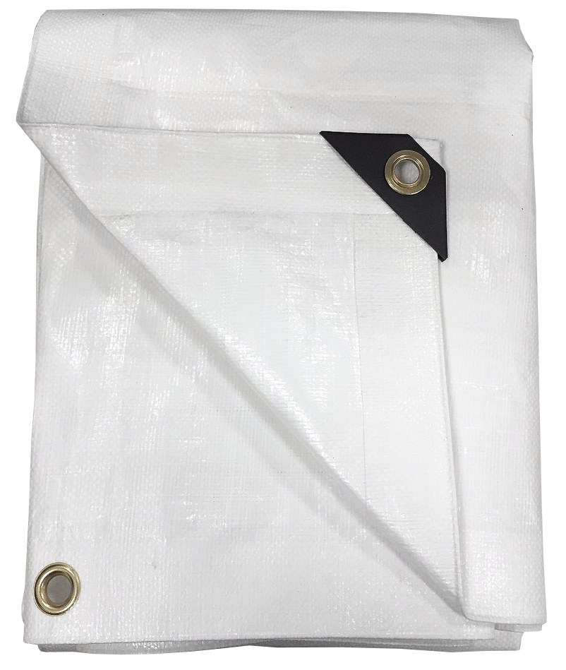 Kraftig vit PE presenning, UV-stabiliserad LD-Polyeten. Armerad med HD-Polyeten. Öljetter varje meter.