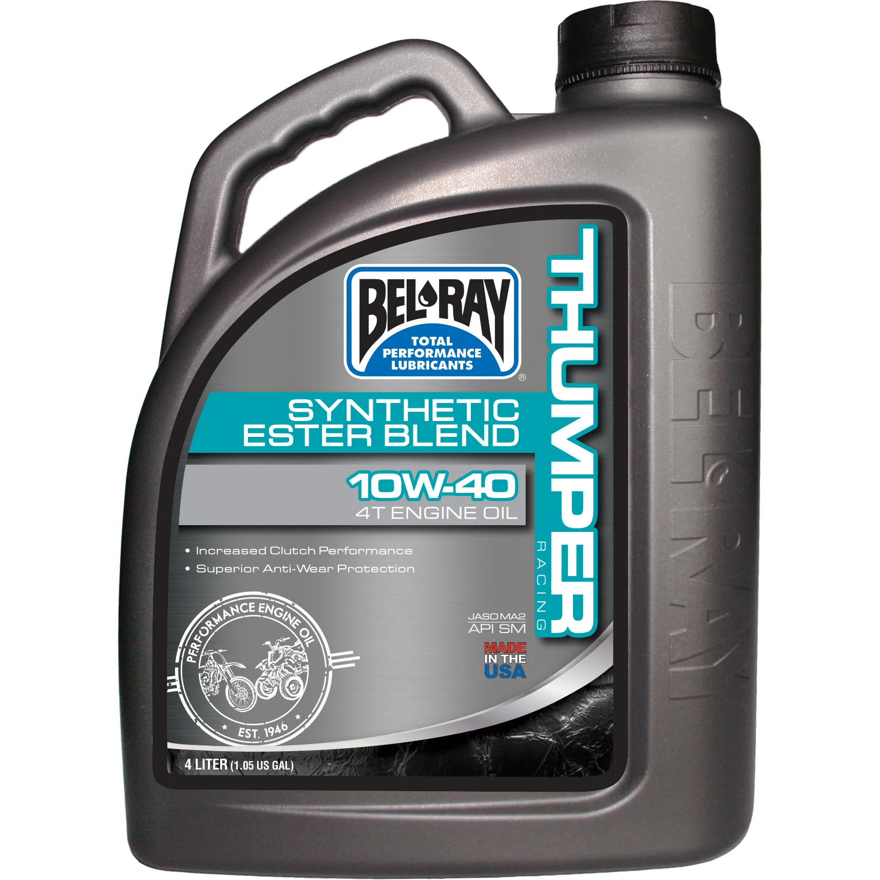 Bel-Ray Thumper Racing Synthetic Ester Blend 4T Engine Oil is a 4-stroke motorcycle racing oil that combines the finest quality synthetic esters and